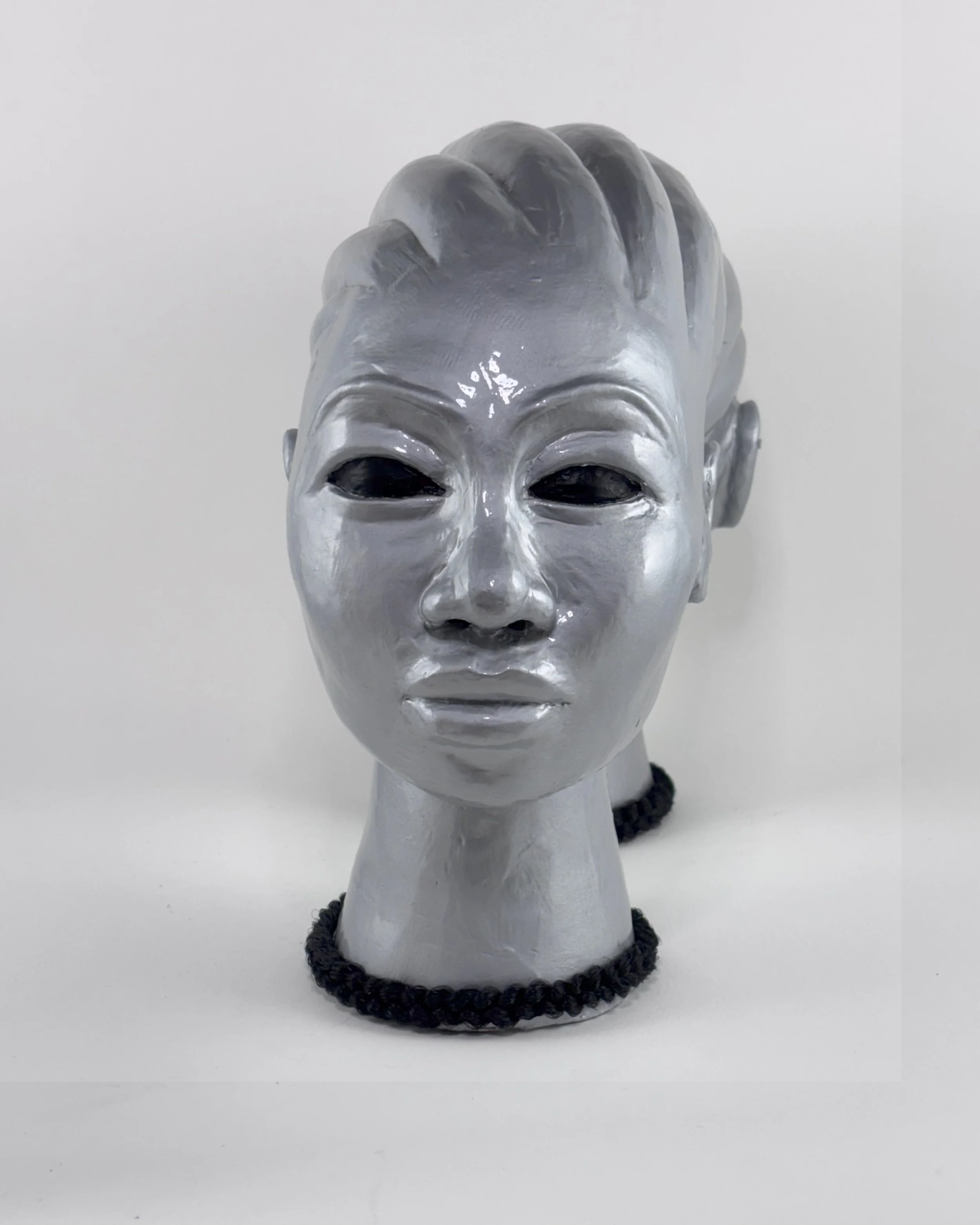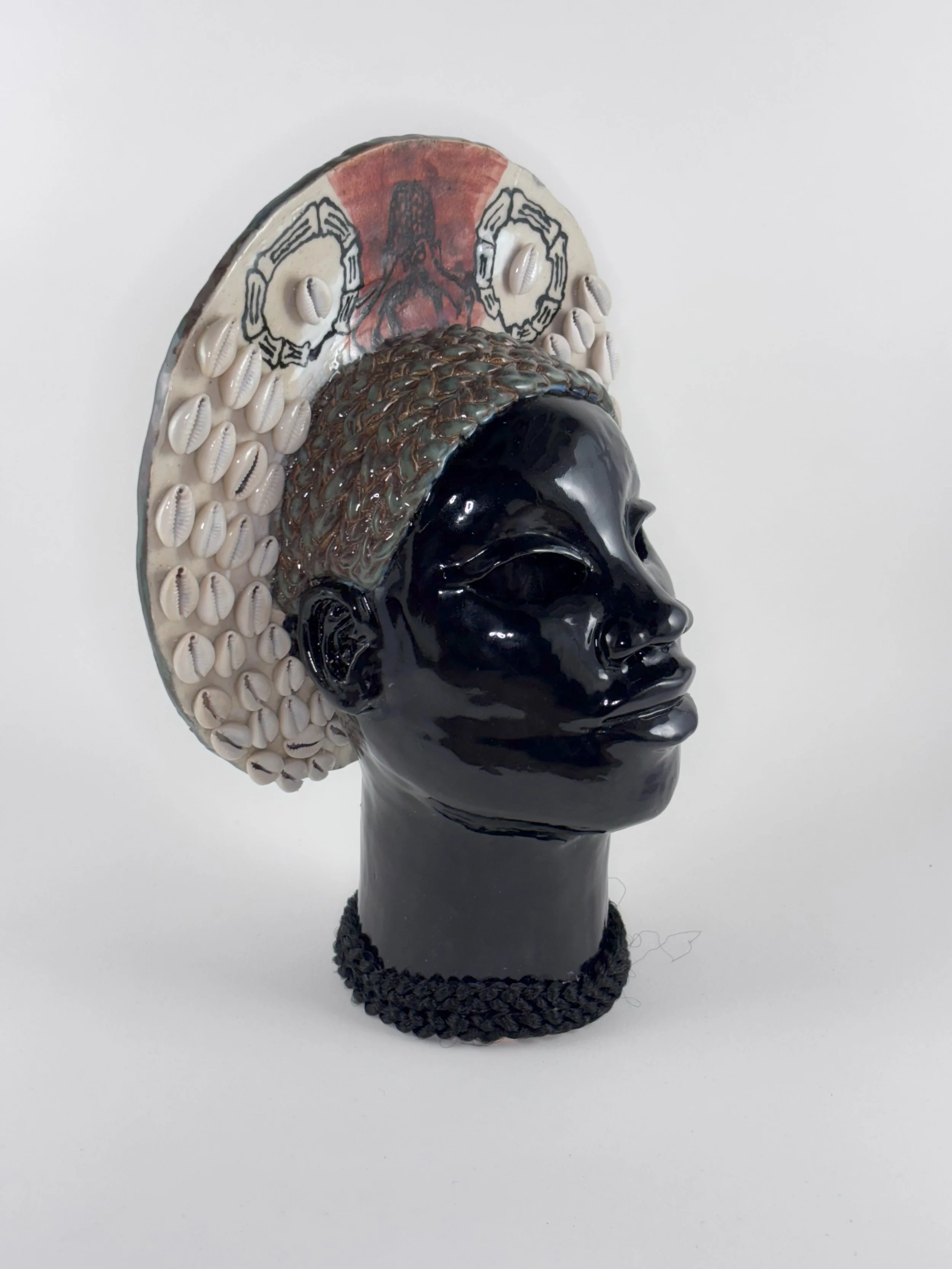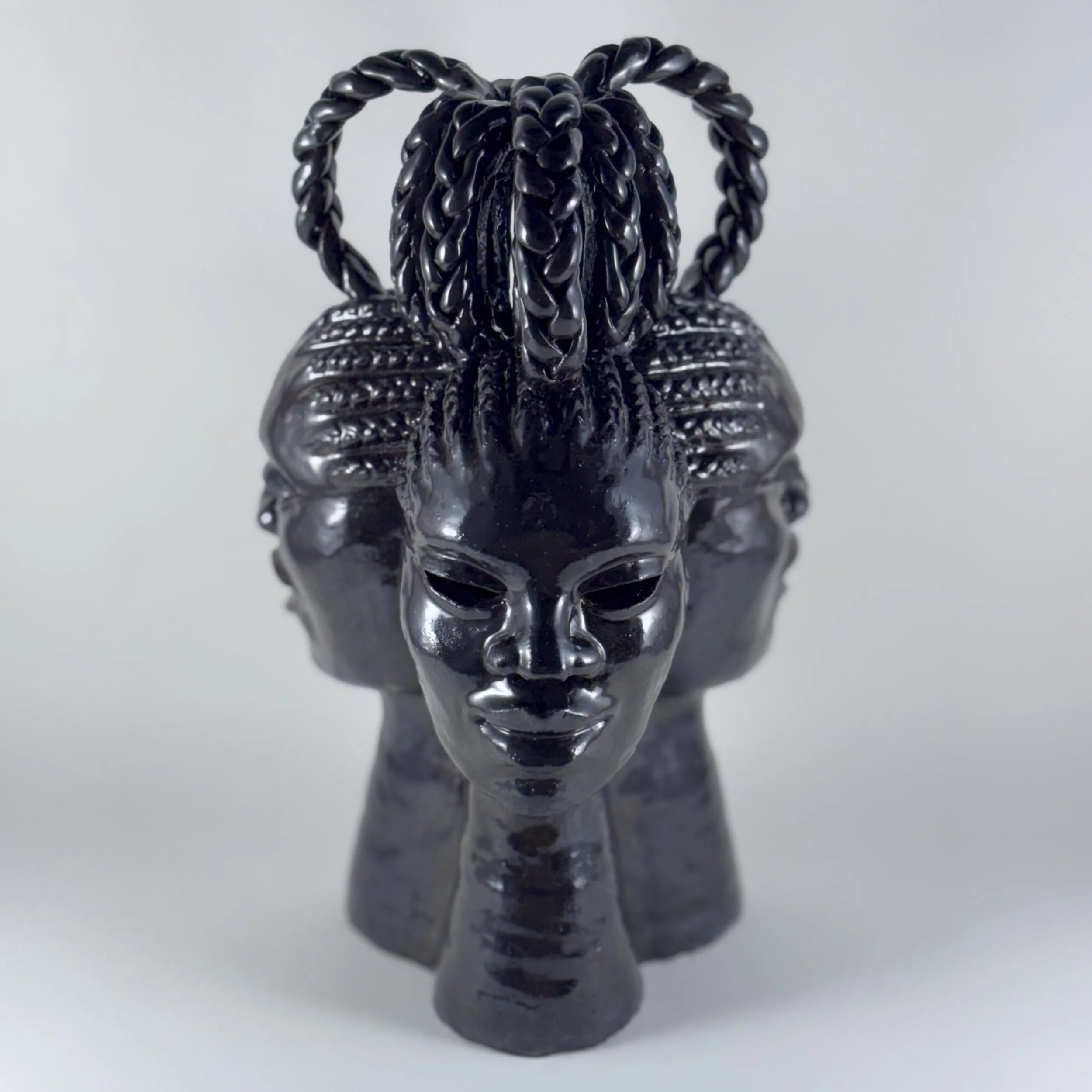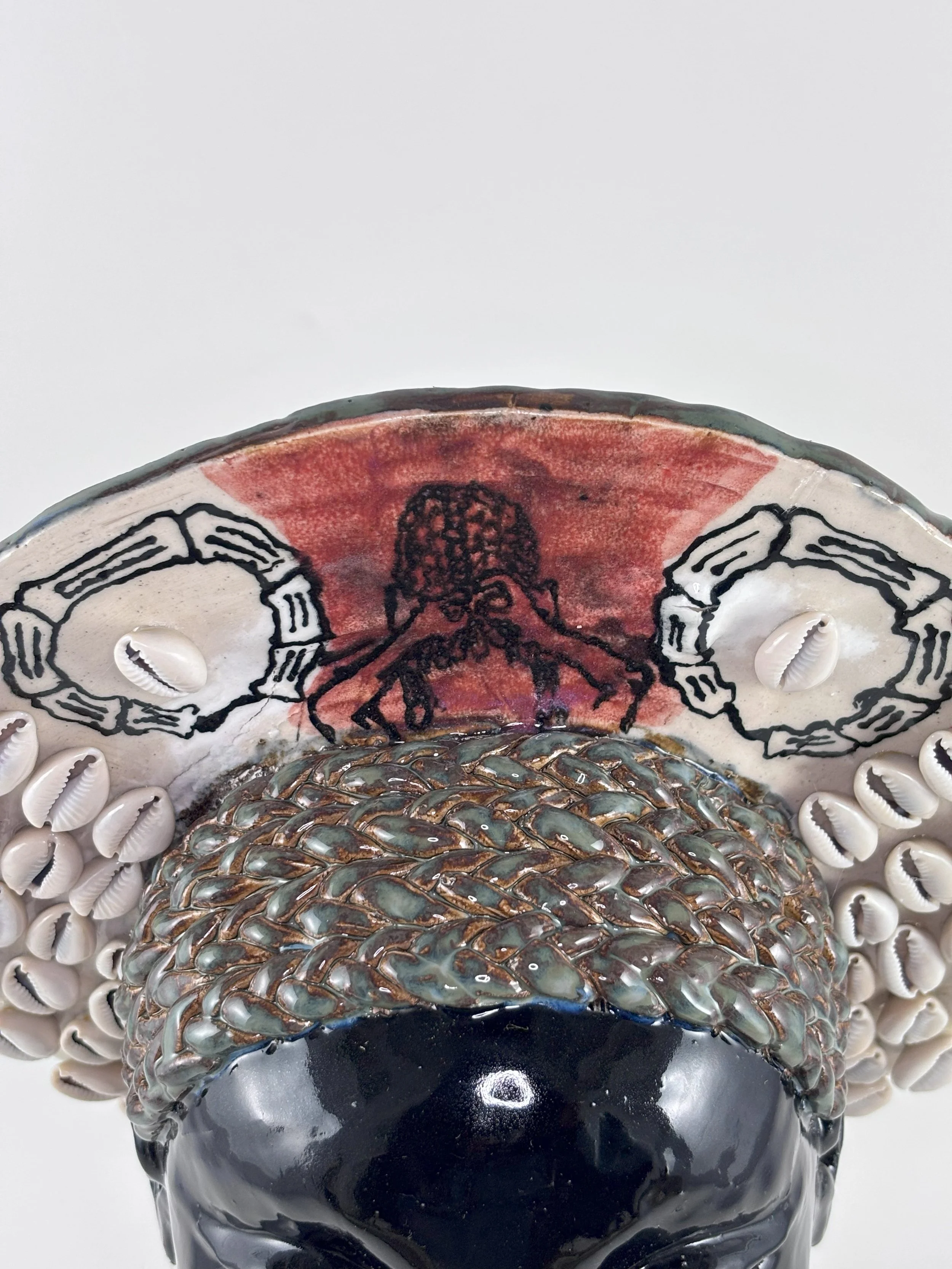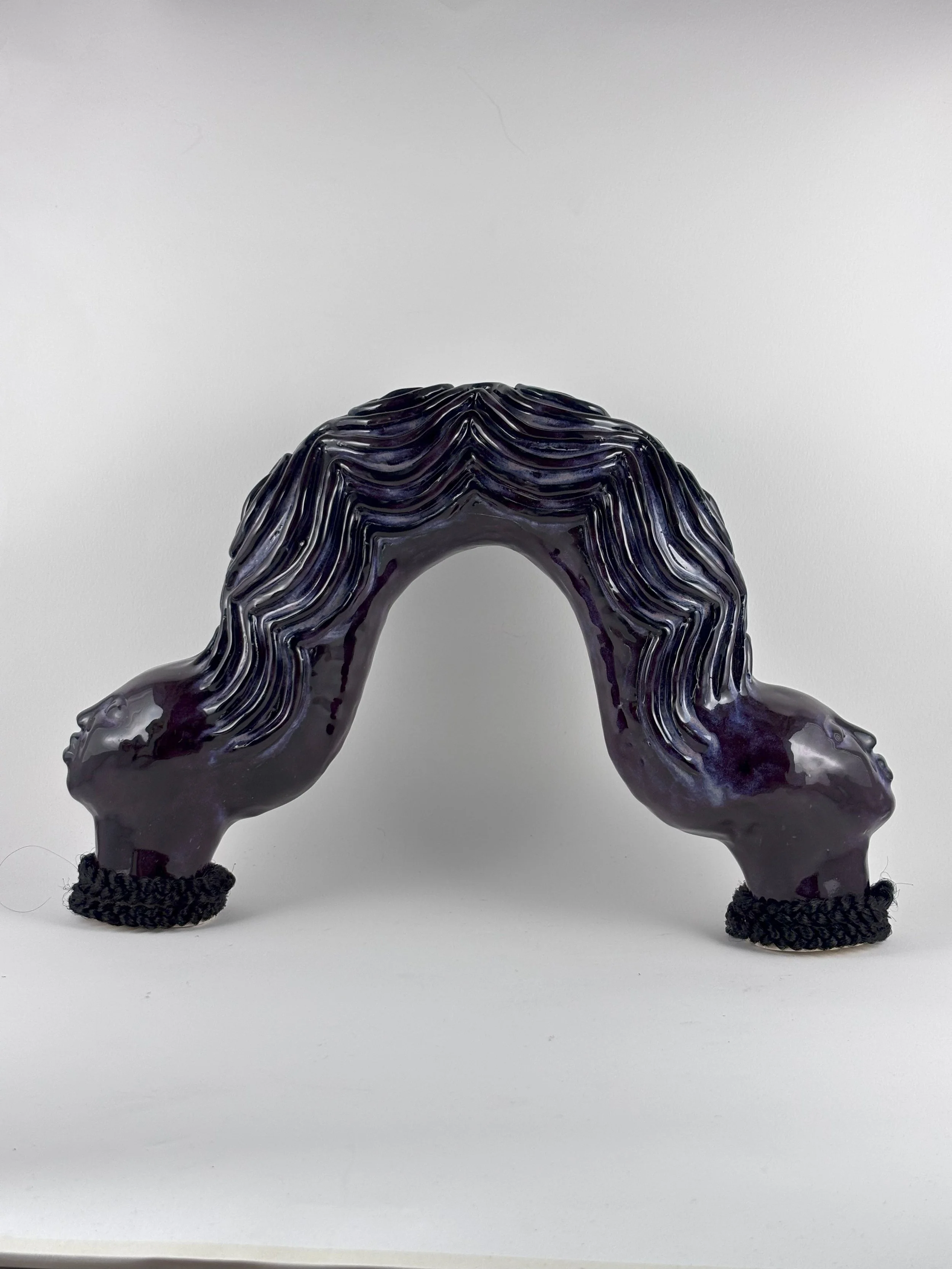 Hairhood: the Strands that Connect Us is a collection of ceramic sculptures that explore the ways in which hair and hairstyling connect black women, femmes, and girls. Through form, structure, and texture, these sculptures aim to make visible the figurative and literal bonds between Black women and femmes. Braids, twists, locs, bantu knots, and cornrows appear in the pieces as structural supports physically linking the femme figures to each other to investigate themes of intimacy, care, and closeness. Through an afro-futurist aesthetic and structurally intricate forms, these works play with the limits of what Black hair can do visually and culturally.